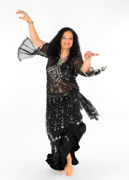 Abeer was born in Alexandria. When she went to university she joined their Egyptian folklore troupe and fell in love with dancing.  The Troupe went on to win awards and travelled around Europe,  when they travelled to Germany she met and fell in love with her husband.  Since her marriage she has been based in Germany but still travelled regularly back home to Egypt.